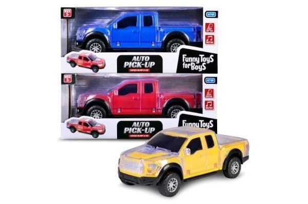 W ZESTAWIE: AUTO 23 CM., FUNKCJE: ODBIJA SIĘ OD PRZESZKÓD I JEDZIE DALEJ, MIGAJĄCE, KOLOROWE PODŚWIETLENIE CAŁEJ KAROSERII, DŹWIĘK PRACY SILNIKA I KLAKSONU, MUZYKA, 3 KOLORY: CZERWONY, ŻÓŁTY, NIEBIESKI, WYM. OPK: 26,5 X 11,5 X 11 CM., BATERIE: 3 X AA 1,5V, BRAK W ZESTAWIE, 3+