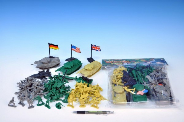 Sada vojáci plast 4cm s tanky a doplňky 96ks v sáčku
