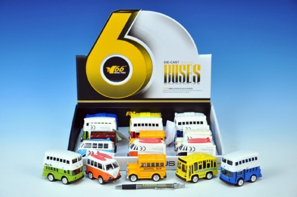 Autobus kov 8cm na zpětné natažení na baterie se zvukem se světlem asst 4 druhy