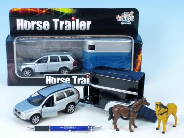 Auto Volvo XC - 90 kov s přívěsem pro koně 13cm na zpětné natažení 3 barvy (1ks v krabičce)