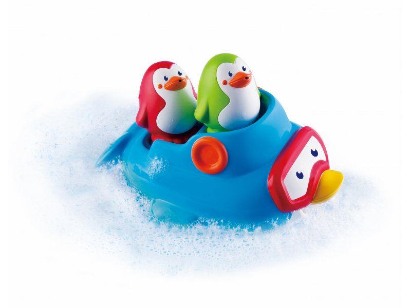 Lodička v podobě maxi tučňáka, který vozí dva malé stříkací tučňáky, je originální a zábavná hračka do koupele. Vymýšlejte spolu s dítětem během koupání příběhy o tom, co všechno tučňáci na svých výletech prožívají a užívejte si společně příjemné chvíle před spaním.Vhodné pro děti od 6 měsíců. číst celé