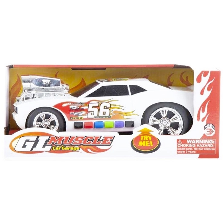 Auto s baterií uspokojí i to nejnáročnější dítě. Má na boku 6 tlačítek: jedním je zvuk startování motoru a dalších 5 tlačítek bude odrážet efekt rockové hudby, který bude slyšet při nastartování vozidla, ještě více zvýrazní vzhled vozu a zvýší adrenalin díky rychlé jízdě. Vyžaduje auto 3x AG13 baterie - jsou součástí sady. Vhodné pro děti od 3 let.