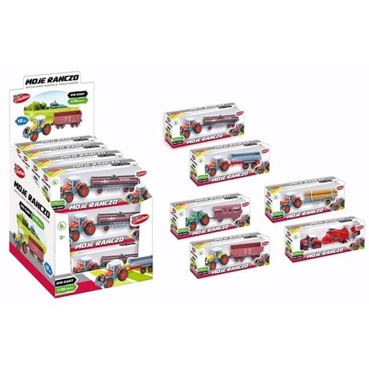 Traktor s přívěsem, v měřítku 1:72, se spoustou možností a efektů, které umožňují rozmanitou a rozvíjející se zábavu. K dispozici je šest různých modelů ve třech barvách. číst celé