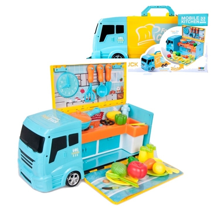 Má zvukové a světelné efekty, auto má otevírací přívěs, ze kterého si můžete vyrobit kuchyni, 33 prvků. Vaše dítě se nejlépe učí každodenní hrou. Povzbuzujte je, aby si hrály s kuchyní a možná objevíte její kulinářské schopnosti! Kuchyňka je vhodná jak pro samostatné hraní, tak i jako součást domečku pro panenky. Sada obsahuje: auto s kuchyňkou, nádobí, kuchyňské doplňky a potraviny. Rozměry produktu (D x V x H) [cm]: 40 x 18 x 15, rozměry balení (D x V x H) [cm]: 43 x 21 x 17, vyžaduje 2 x AA baterie ? nejsou součástí. Hračka je určena pro děti ve věku 3+. Baleno v krabici s okénkem.