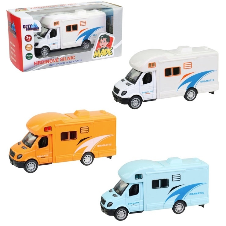Obytné auto kovové se zpětným chodem je dokonalým společníkem na cesty i do pokojíčku. Tento model z kolekce City collection ve velikosti 11 cm je vyrobený z kvalitního kovu, který zaručuje odolnost při hraní. S jeho pomocí si děti mohou představit své dobrodružné výpravy, a to jak doma, tak na cestách.
