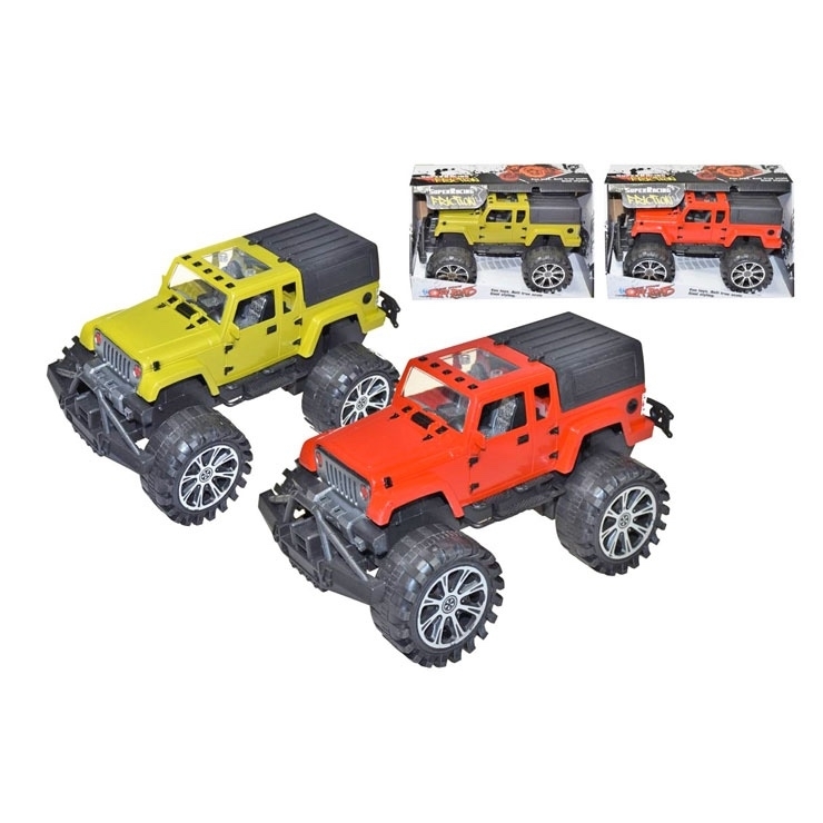 OFF ROAD Jeep na setrvačník. Možnost výběru ze dvou barev - červené nebo zelené. Nevhodné pro děti do 3 let.Rozmer auta - 27 x 15cm číst celé