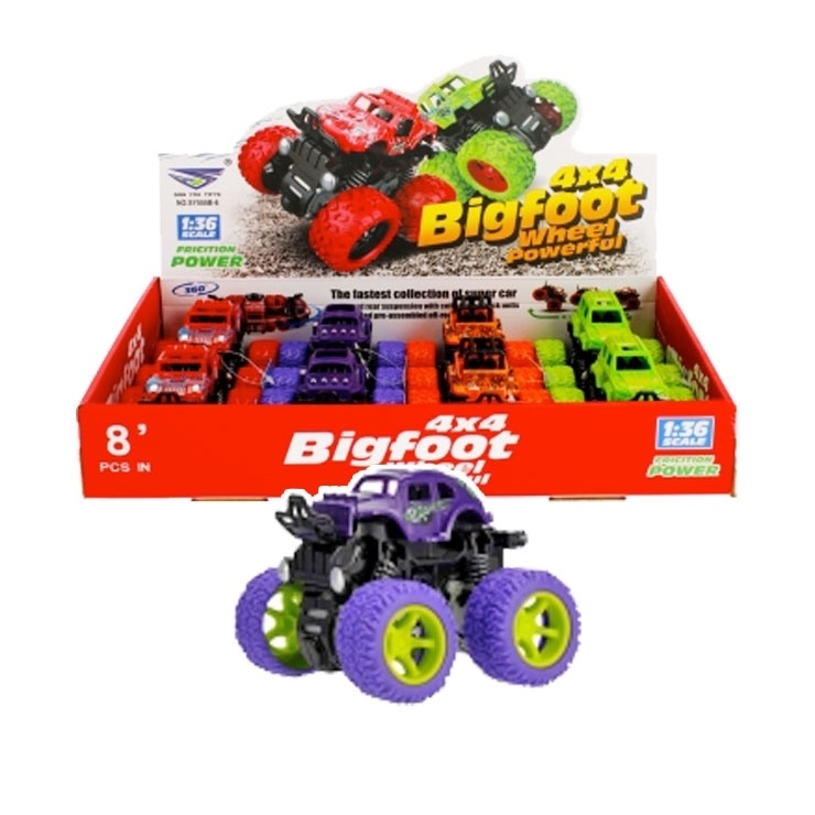 Auto má velká pryžová kola pro lepší přilnavost, má funkci pull back, takže po zatlačení dopředu pokračuji v jízdě sám, má pohon všech čtyř kol, dodává se ve čtyřech barvách: oranžová, zelená, červená nebo fialová, 1 auto v měřítku: 36. Senzační autíčko Jeep s velmi velkými koly dokáže snadno překonat všechny, dokonce i ty nejnáročnější překážky na své cestě, což dítěti poskytuje sílu skvělé zábavy, o samotě is kamarády! Obsah soupravy: terénní vozidlo.