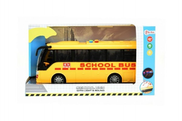 Autobus školní plast 29cm na baterie se světlem se zvukem na setrvačník v krabici