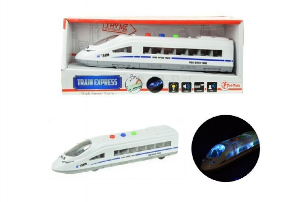 Vlak plast 21cm na setrvačník na baterie se světlem se zvukem v krabičce 24x10x7cm