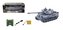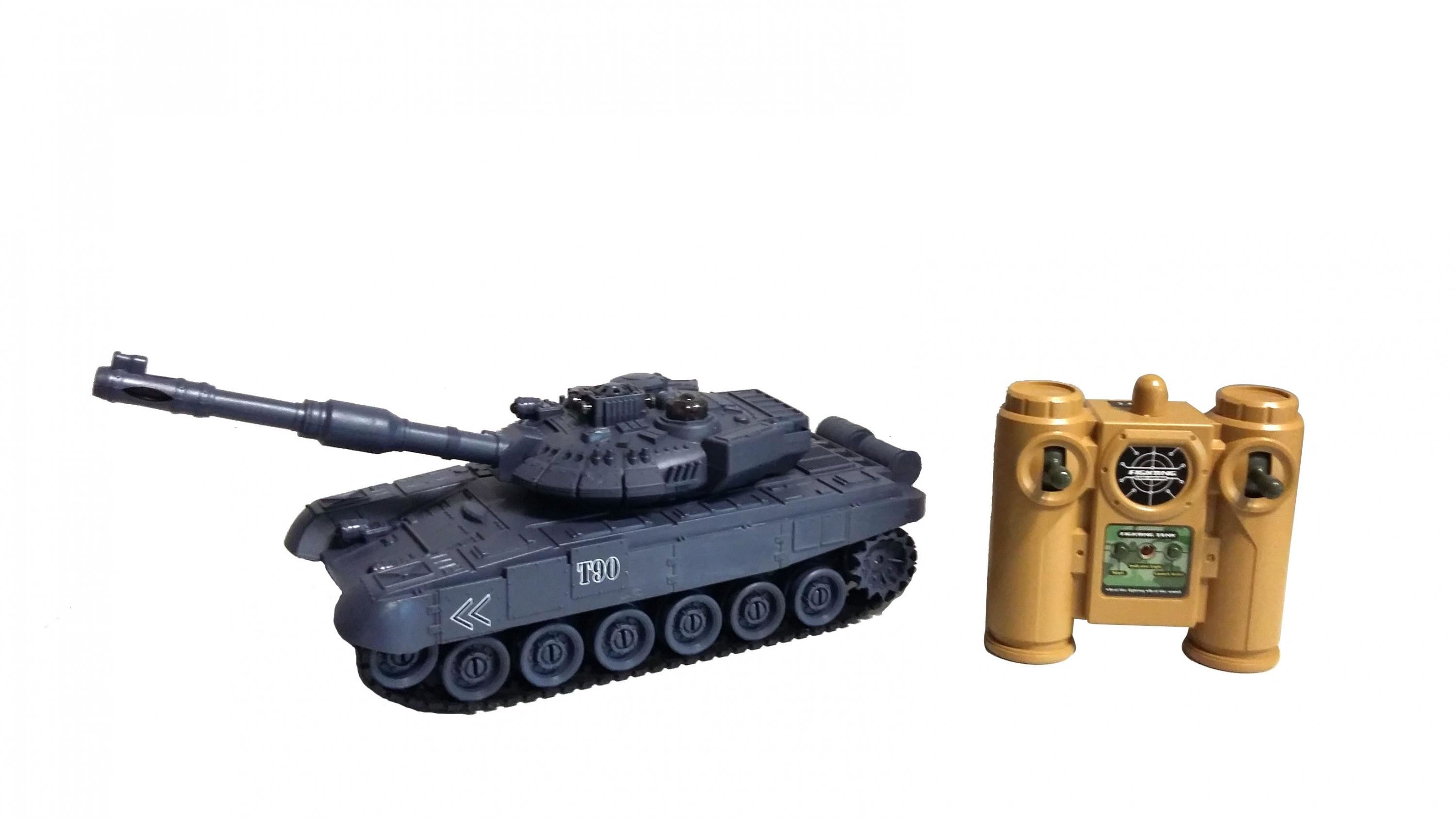 Tank s dálkovým ovladačem, infrared, 2,4 GHz. Tank aktivujete tlačítkem ON na jeho spodní straně. Tlačítkem FIRE na dálkovém ovladači spustíte zvukové a světelné efekty výstřelu. Tan jezdí všemi směry, pohyb se řídí pohybem páček na dálkovém ovladači. Pohyb tanku vpřed posun obou páček vpřed na ovladači, jízda vzad - posun obou páček dozadu. Otáčení tanku posun jedné páčky dopředu nebo dozadu. Otáčení děla tanku tlačítka ve vrchní části ovladače vlevo nebo vpravo. Provoz tanku na bateriový pack (součást balení, nabíjení přes nabíječku. Dálkový ovladač na 2x1,5V baterie AA - nejsou součást balení. V případě zakoupení druhého tanku si můžete zahrát tankovou bitvu. Každý hráč má 4 životy - světla na zadní části tanku. Po každém zásahu jedno světlo zhasne. Prohrává ten, komu se nejdříve rozblikají světla na zadní části tanku