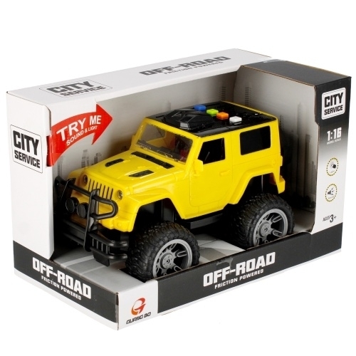 Má zvukové a světelné efekty aktivované tlačítky na střeše - svítí lampy, zvuk motoru, klakson, zvuk sirény, zvuk startování motoru, má funkci pull & back, , má pryžové pneumatiky. Auto v měřítku 1:16.