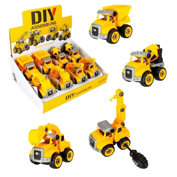 Šroubovací stavební auto je vše, co malý kutil potřebuje, aby se na pár hodin věnoval své oblíbené hře. Díky sadě si dítě rozšíří svoji fantazii a manuální dovednosti! Auto se dodává ve čtyřech variantách: sklápěč, míchačka na beton, bagr, jeřáb.