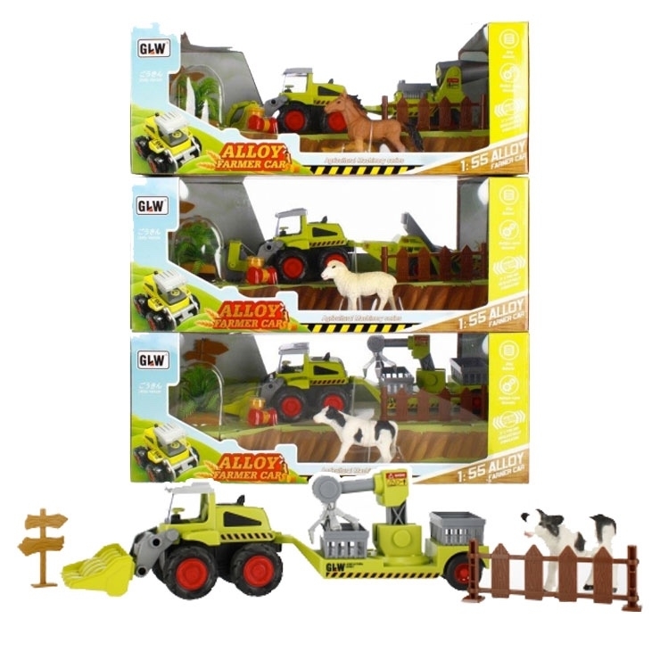Traktor má namontován zemědělský stroj s pohyblivými částmi, stroj je od traktoru odpojen. Vše je vyrobeno z plastu a gumy.