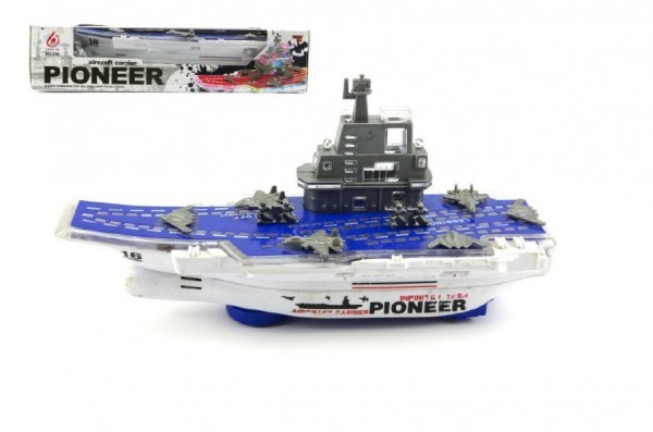 Letadlová loď plast 29cm narážecí na baterie asst 2 barvy v krabici