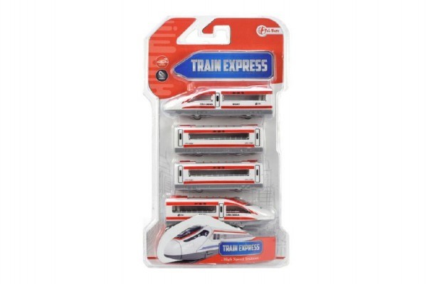 Vlak s vagóny na magnety 4ks 48cm plast na zpětný chod asst 2 barvy na kartě
