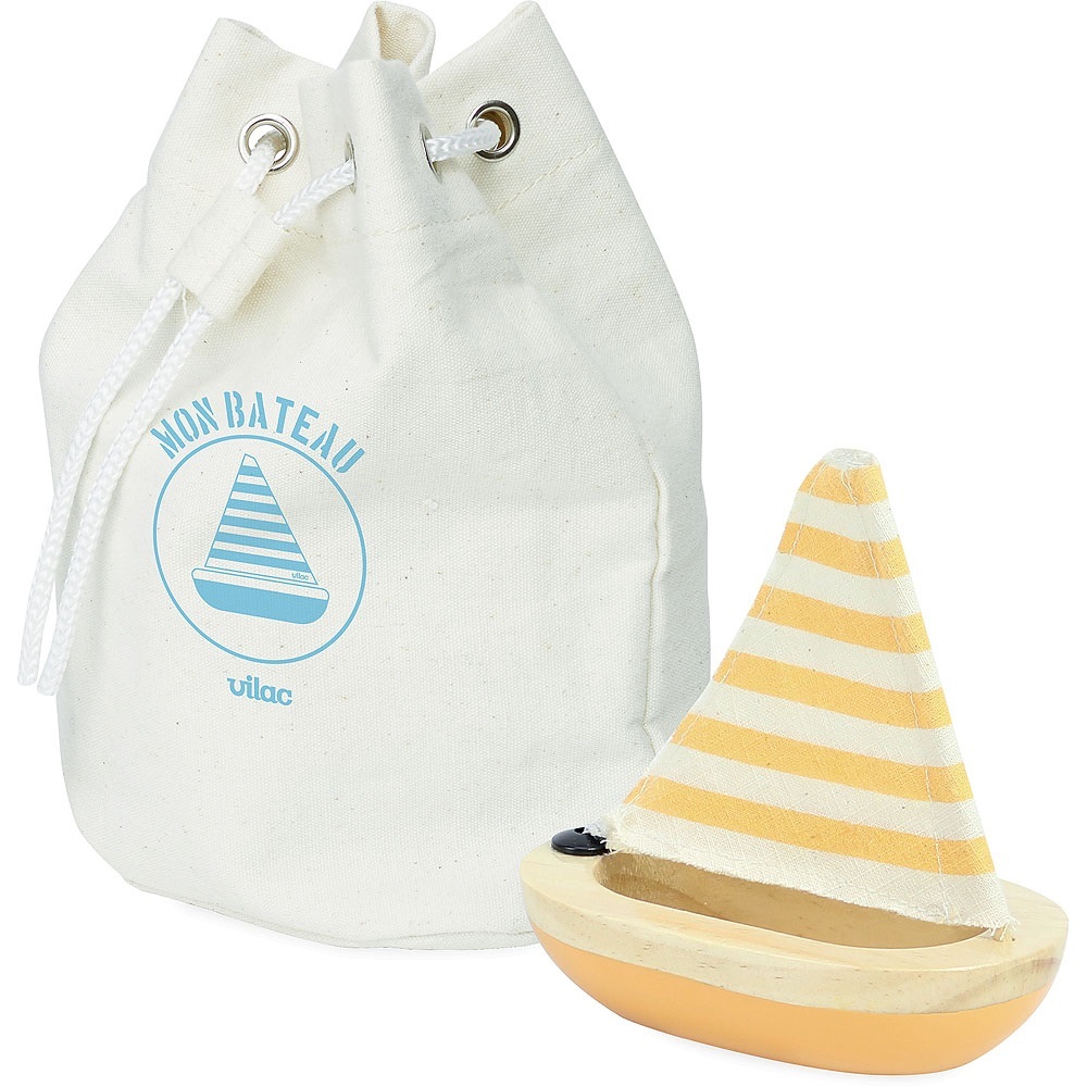 Vilac Dřevěná malá plachetnice žlutá Krásná dřevěná plachetnice. Ideální do dětského pokojíku i vany. Dřevěné polakované tělo a textilní plachta. Zabaleno v bavlněném pytlíku s potiskem. Již více než 100 let plní značka Vilac dětské sny. Společnost Vilac sídlí hluboko v srdci pohoří Jura, obklopena horami, jezery a lesy. Tato francouzská společnost vyrábí od roku 1911 dřevěné hračky v klasickém, starodávném stylu s moderními barvami a vzory. Hračky Vilac jsou jedinečné, nikdy nevyjdou z módy a dokáží okouzlit všechny generace. Vilac pomáhá utvářet dětskou představivost svými radostnými ilustracemi či dizajny a reinterpretací klasických hraček, které se jen tak neopotřebují. Děti dostávají na Vánoce a narozeniny spousty hraček, většina z nich je však nezaujme na dlouhou dobu, láska k hračce se nenaplní. Dřevěné hračky Vilac vzbuzují vášeň i o 50 let později, když jako dospělí náhodou najdete v podkroví hračky, které jste jako děti milovali. Vilac již 100 let propojuje děti s hračkami, které si oblíbí a váží si jich. A proč je děti tak milují? To zůstává tajemstvím firmy Vilac.