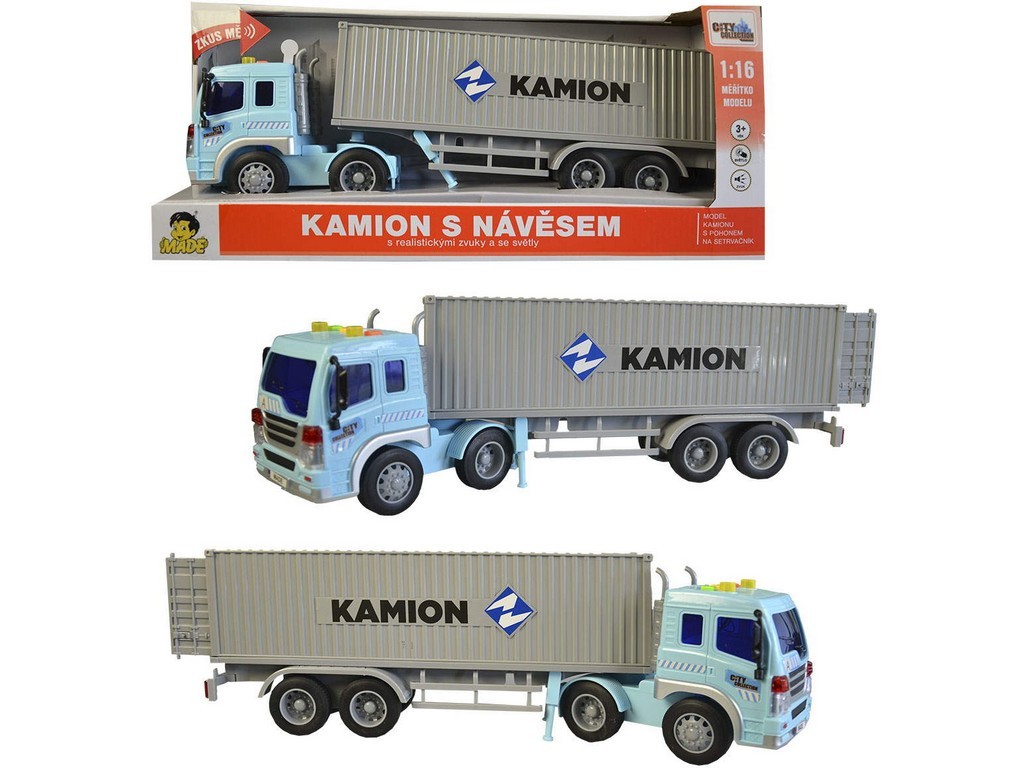 Tahač na setrvačník, na baterie, 40cm Tahač z české kolekce City Collection. Otvíratelný nákladový prostor. 4 funkce zvuku a světlo:
