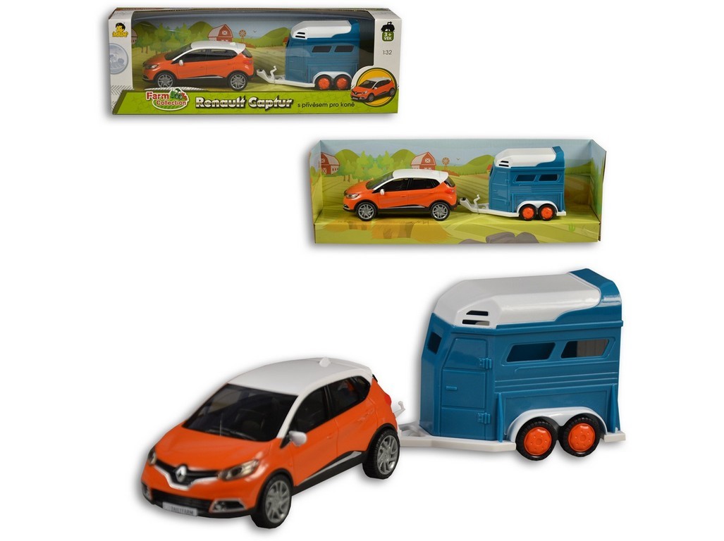 Plastový model auta Renault Captur v měřítku 1:32 s přívěsem pro koně z produktové řady Farm Collection. Délka auta včetně přívěsu: 30 cm. Volná kola. číst celé