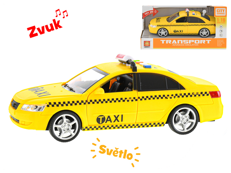 Auto taxi 24cm 1:16 na setrvačník na baterie se světlem a zvukem v krabičce