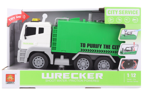 Auto cisterna na baterie. Po stisknutí tlačítek cisterna vydává zvuky a svítí. Z hadice cisterny stříká voda. Rozměry cisterny cca 29 x 13 x 10 cm. Rozměry balení cca 35,5 x 20,5 x 13,5 cm. Napájení na 3 AG13 baterie (jsou součástí balení). Věk 3+ číst celé