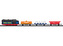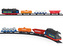 Nákladní vlak na baterie se světlem a se 3 druhy nákladních vagónů, který jezdí po trati dlouhé 2,94 m.