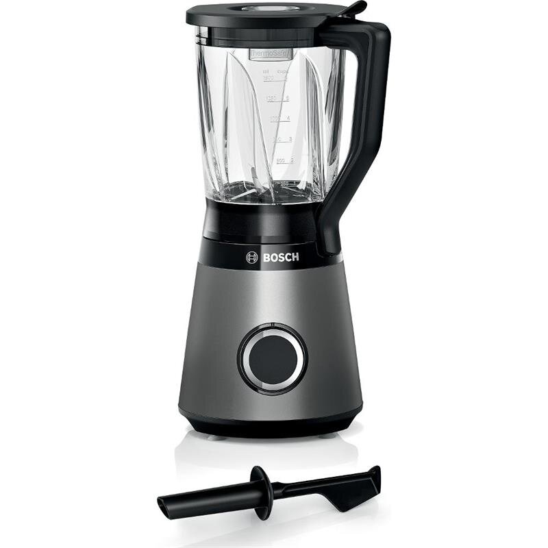 Bosch MMB6172S Serie 4 VitaPower S. 4 je výkonný stolní mixér určený pro běžné i náročnější kuchyňské úkony. Díky motoru s příkonem 1200 W a maximálním počtem otáček až 30 000 ot./min. zvládá rychlé mixování, drcení ledu i přípravu pyré a hladkých nápojů. Skleněná nádoba ThermoSafe s objemem 1,5 l nabízí bezpečné použití s teplými i studenými ingrediencemi a 3D podporou cirkulace pro rovnoměrné promíchání.