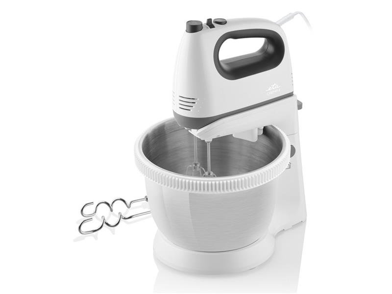 Nechte šlehač pracovat za vás a vložte jej do praktického stojánku s nerezovou 3,6l mísou. Se šlehačem ETA Crema II snadno vyšleháte šlehačku, sníh, lehčí těsta i dortové krémy. V balení najdete 2 nerezové hnětací háky a 2 šlehací metly, které všechny suroviny rovnoměrně promíchají. Metly i háky snadno uvolníte pomocí jednoho tlačítka. Nechybí zde ani bezpečnostní pojistka proti přehřátí a protiskluzové nožičky zase zajistí, aby šlehač s mísou netancoval po kuchyňské lince.