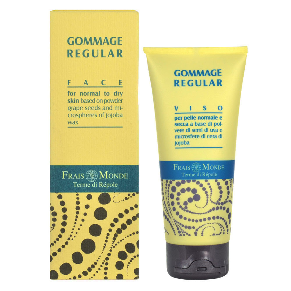 Pleťový peeling **Frais Monde Gommage Regular Face Normal To Dry Skin**. Pleťový peeling Frais Monde Gommage Regular Face Normal To Dry Skin čistí pleť a dokonale odstraňuje z pokožky nečistoty. Odstraňuje z pleti odumřelé kožní buňky. Výsledkem je hladká, hydratovaná a zářící pleť. Ideální pleťová péče pro normální až suchou pleť. **Obsahuje**: _mikroperličky z jojobovéhu vosku_ - odstraňují odumřelé kožní buňky a nečistoty z pleti. Obnovují pleť a zanechávají ji svěží a hladkou. _extrakt z hroznových semínek_ - chrání pleť a odstraňuje odumřelé buňky **Použití**: Aplikujte na dokonale čistou pleť po použití čistícího mléka a toneru. Naneste množství přípravku na pleť, nechte chvíli působit a poté důkladně opláchněte. Opakujte 2-3x týdně.