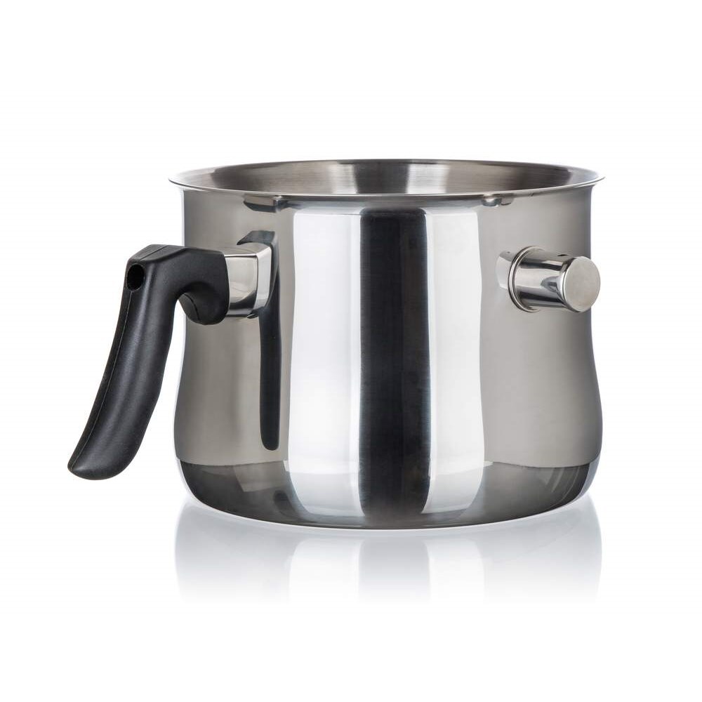 Tato nerezová mlékovka s objemem 2,5 litru je vyrobena z kvalitní nerezové oceli a disponuje dvojitou stěnou, která umožňuje vaření ve vodní lázni. Díky tomu můžete připravovat mléko, omáčky, pudinky, krupicové kaše či čokoládu bez rizika připálení. Díky píšťalce uslyšíte, kdy voda uvnitř dosahuje bodu varu, a můžete tak jednoduše reagovat, aniž byste museli neustále hlídat hrnec.