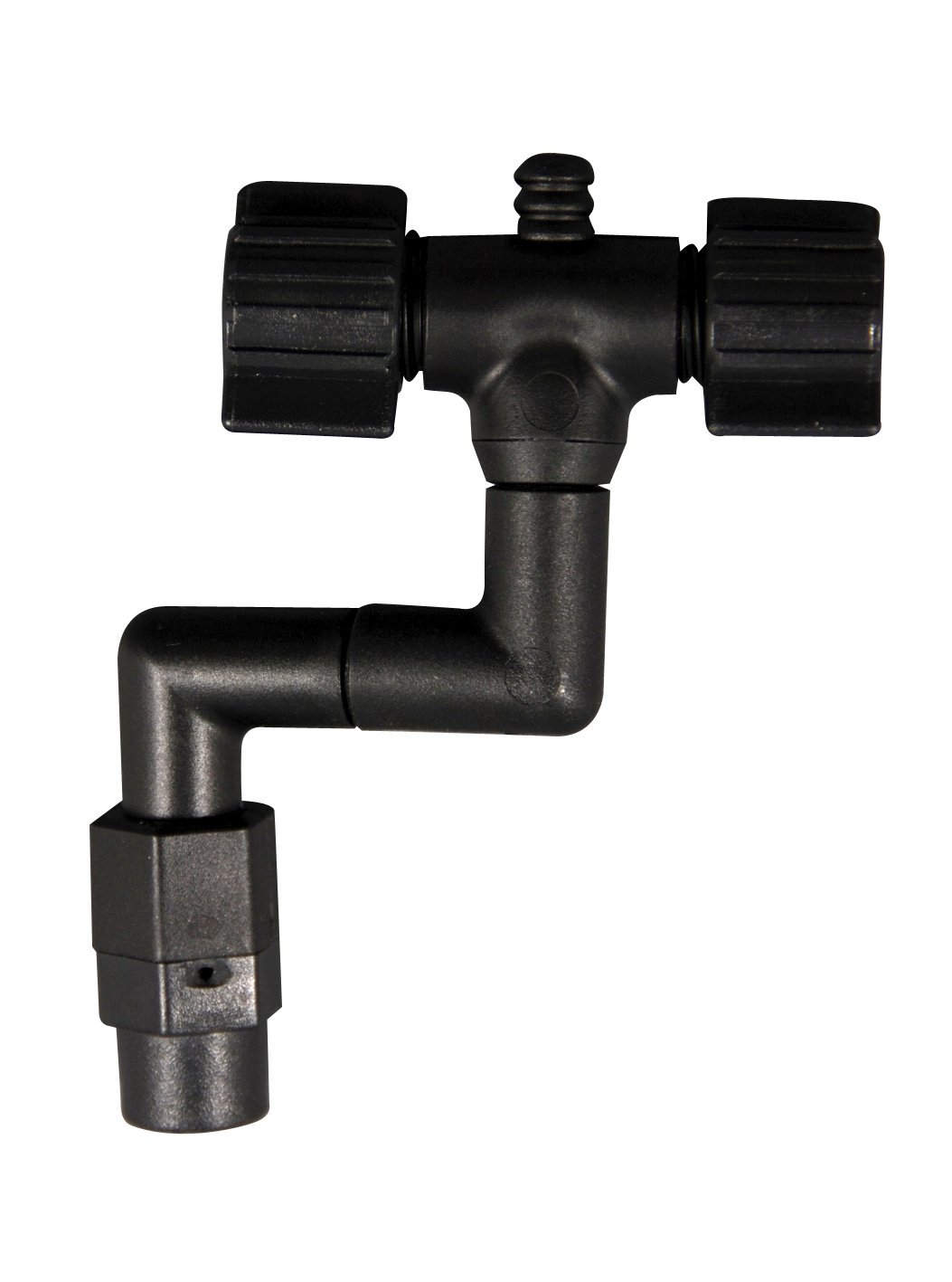 - Tryska s T přípojkou umožňuje rozptýlení vody požadovaným směrem, včetně šroubení pro protažení hadice přes stěnu terária.