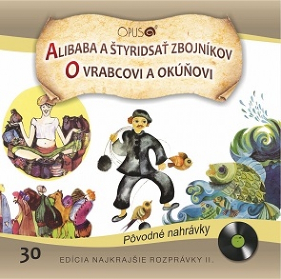 1. ALIBABA A ŠTYRIDSAŤ ZBOJNÍKOV 48:17 Na motívy rozprávky z Tisíc a jednej noci napísala Viera Bieliková Scénická hudba: Rudolf Geri Účinkujú: Pesničkár: Boris Farkaš Alibaba: František Kovár Alibabova žena: Viera Horváthová-Richterová Kásim: Marián Slovák Kásimova žena: Libuša Trutzová Mardžána: Michaela Mikulášová Muhamed: Peter Kočiš Kapitán: Andrej Hryc Zbojníci: Ivo Gogáľ, Ján Mistrík, Benjamín Michalský Mustafa: Ľubo Gregor Réžia: Martin Kákoš Dramaturgia: Elena Matulayová Hudobná réžia: Peter Smolinský Zvuková réžia: Andrej Sloboda Realizácia zvukov: Peter Mojžiš Štúdiový skupinu diriguje autor Cover ©: Katarína Bieliková © 1991 OPUS 2. O VRABCOVI A OKÚŇOVI 21:13 Na motívy Aľonuškiných rozprávok D. N. Mamina-Sibiriaka napísala Gabriela Leinerovičová Scénická hudba: Milan Dubovský Účinkujú: Rozprávač: Jozef Kroner Vrabec Vrabcovič: Marián Labuda Okúň Okúňovič: Jozef Bednárik Jaša, kominár: Vladimír Minarovič Sýkorka: Elena Slavíková Pobrežník: Richard Stanke Karas: Ľubo Gregor Réžia a dramaturgia: Elena Matulayová Zvuková réžia: Juraj Filo Hudobná réžia: Ján Lauko Štúdiový orchester diriguje autor Cover ©: Zdena Vojtková © 1979 OPUS