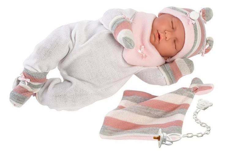 Mluvící miminko s měkkým látkovým tělem, které po zatlačení na hrudník začne říkat „mama“, „papa“ a vydávat reálný zvuk plačícího miminka. Ruce a nohy jsou k tělu přichyceny kloubem. Miminko je polohovací a může i sedět. Velikost 42 cm. Součástí balení je 3 x knoflíková baterie LR44. číst celé