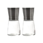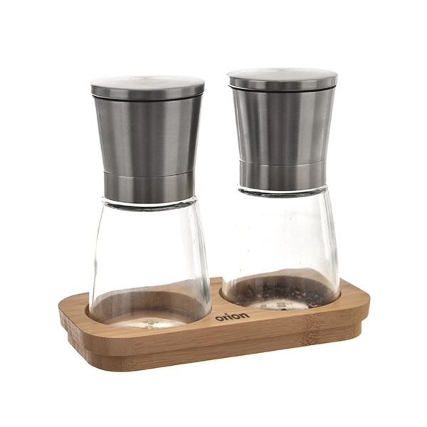 Mechanický mlýnek na koření velmi snadno čerstvě namele koření při dokončování pokrmů, ale i dochutí hotová jídla přímo u stolu. Možnost nastavení hrubosti mletí pomocí závitu. Sada 2 ks na bambusovém podnosu. Materiál: sklo, nerez 304SS, bambusové dřevo, keramický mlecí mechanismus. Nedotahujte zcela závit k nastavení hrubosti mletí, hrozí odloupnutí kroužku kryjícího keramický závit. Rozměry: pr. 6,5 cm, v. 13,6 cm, celkové rozměry 14x8,5x14,5 cm. Skleněná část vhodná do myčky.