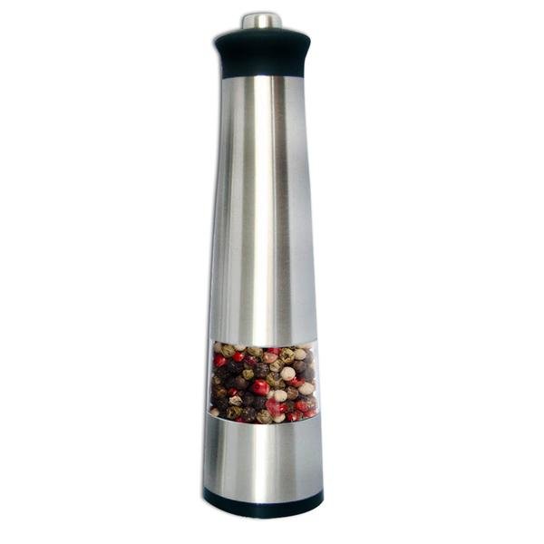 Elektrický mlýnek na pepř je velmi praktický pomocník při dochucování potravin. Mlýnek je poháněný čtyřmi tužkovými bateriemi AAA a stiskem tlačítka sám pepří. Díky modernímu designu je vhodný i jako dekorace na stole i jako dárek. Rozměry mlýnku: 22 x 5,6cm. Baterie nejsou součástí balení. Materiál - plast, nerez. Rozměry - 5,6 x 22 cm.