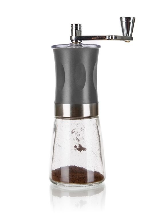 Mechanický mlýnek na kávu ALEGRIA 19cm je dodáván v šedém provedení se skleněným zásobníkem. Vnitřní část mlýnku tvoří keramická mlecí mechanika s možností nastavení hrubosti mletí. Rozměry mlýnku: výška 19cm, průměr základny 6,5cm.