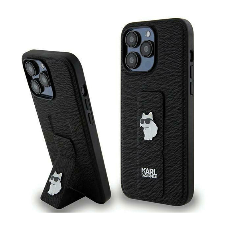 Karl Lagerfeld Gripstand Saffiano Choupette Pins - pouzdro iPhone 13 Pro (černé)