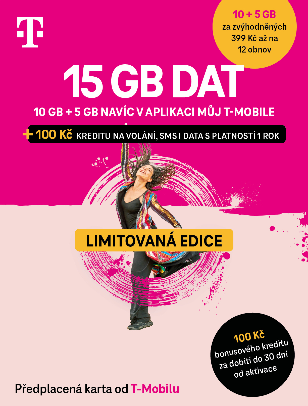 PŘEDPLACENÁ T-MOBILE TWIST SIM KARTA - 15GB (10GB+5GB)- kredit 100 Kč