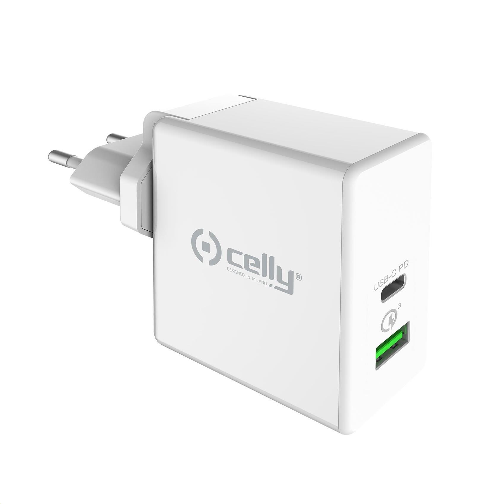 Celly nabíječka do sítě, 1x USB, 1x USB-C, 45 W, bílá