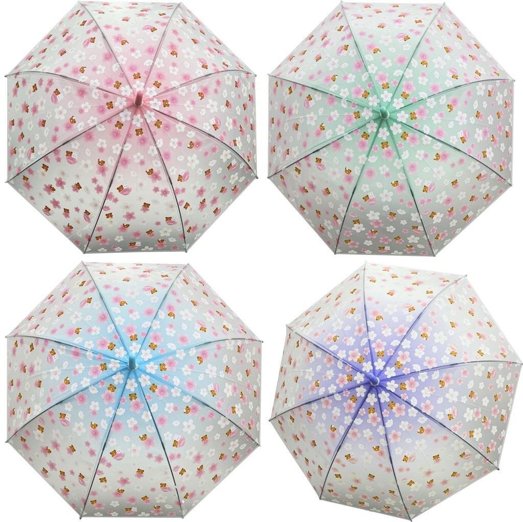 Parasolka przezroczysta dziecięca z wzorami kwiatów i misi.