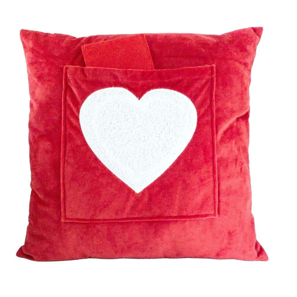 Poduszka z wyszytym sercem na kieszonce + kopertą na liścik. Czerwona číst celé