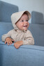 Moniel Dětská rostoucí zavazovací čepice s kšiltem proti slunci Pastel béžová je vhodná pro miminka od narození. Chrání hlavičku a oči miminka před slunečními paprsky a přehřátím. Má praktické šňůrky, kterými lze regulovat velikost čepice a přizpůsobit velikosti hlavičky miminka. Šňůrky zavážete pod bradou miminku a čepička tak drží na svém místě a nesjíždí. Ručně šitá v ČR. Velikost od narození do 2 let.