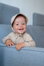 Moniel Dětská rostoucí zavazovací čepice s kšiltem proti slunci Pastel béžová je vhodná pro miminka od narození. Chrání hlavičku a oči miminka před slunečními paprsky a přehřátím. Má praktické šňůrky, kterými lze regulovat velikost čepice a přizpůsobit velikosti hlavičky miminka. Šňůrky zavážete pod bradou miminku a čepička tak drží na svém místě a nesjíždí. Ručně šitá v ČR. Velikost od narození do 2 let.