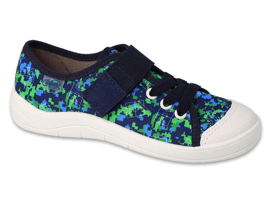 Tenisky jsou bezesporu univerzálním typem obuvi, která se bude hodit při mnoha příležitostech. Svršek je vyroben z prodyšného textilního materiálu se zajímavým vzorem. Boty se budou skvěle hodit jako náhradní obuv do školky nebo školy, ale i na procházky v teplých slunečných dnech. Zapínání na suchý zip je funkční, pohodlné a praktické.