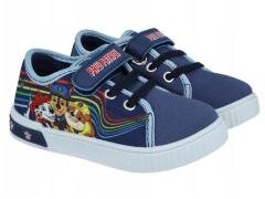 Stylowe trampki dziecięce z uwielbianymi bohaterami Psi Patrol to doskonały wybór dla każdego małego fana przygód Marshalla, Chase\'a i reszty ekipy! Świetnie sprawdzą się na co dzień - do przedszkola, szkoły czy na spacer. Buty utrzymane są w granatowej kolorystyce z jasnoniebieskimi akcentami, dzięki czemu prezentują się nowocześnie i efektownie. Po zewnętrznej stronie cholewki znajduje się nadruk postaci z bajki Psi Patrol, co nadaje obuwiu wyjątkowy charakter licencyjny. Biała podeszwa została wyposażona w wbudowane świecące diody LED, które migają podczas chodzenia, przyciągając uwagę i sprawiając dziecku jeszcze więcej radości. Dodatkowo z tyłu podeszwy znajduje się ozdobny gumowy pasek z motywem psich łapek w kolorze granatowym. Trampki zapinane są na praktyczny rzep, który umożliwia szybkie i samodzielne zakładanie oraz zdejmowanie obuwia. Dodatkowo zastosowano elastyczną gumkę w kolorze granatowym, która imituje sznurówki i automatycznie dopasowuje się do stopy, zapewniając lepszą stabilizację i komfort noszenia. Obuwie zostało wykonane z lekkich i wygodnych materiałów, dzięki czemu idealnie sprawdzi się w codziennym użytkowaniu - bez zmęczenia i dyskomfortu Długość wkładki: 18,5 cm