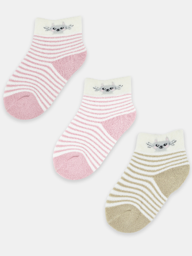 NOVITI SF024-G-01 Skarpety dziewczęce z puszystym ściągaczem kot mix 6-12m