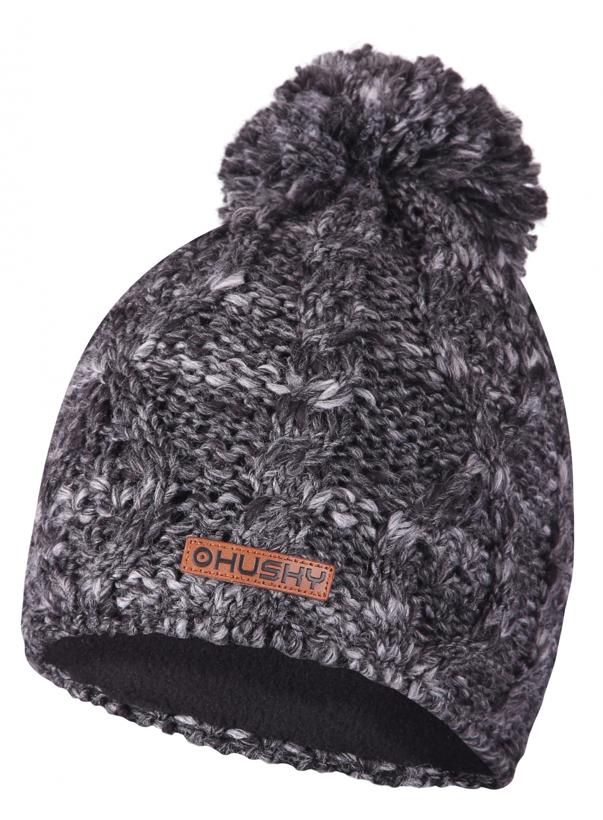 Pletený hřejivý kulich melange s bambulí s kosočtvercovým vzorem. Ve vnitřní části s fleecem pro příjemnější nošení.