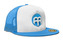 Klasická snapback kšiltovka bílo-modré barvy se zapínáním pomocí plastového pásku, zadní síťovanou částí a logem Brainmarketu.