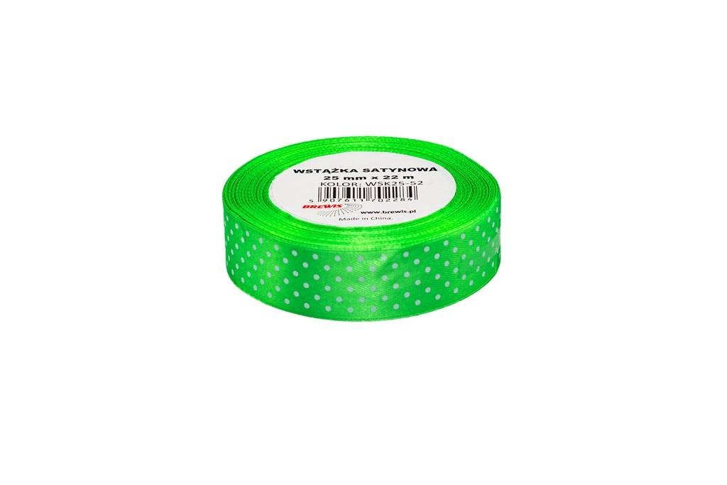 Wstążka satynowa w kropki jasna zielona 25mmx22m