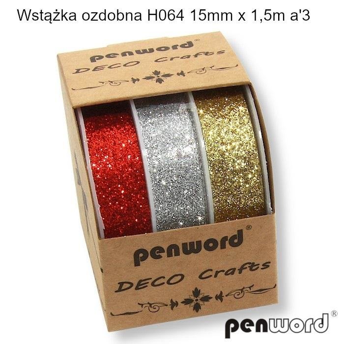 Wstążka ozdobna 15mmx1.5m 3szt (12szt)