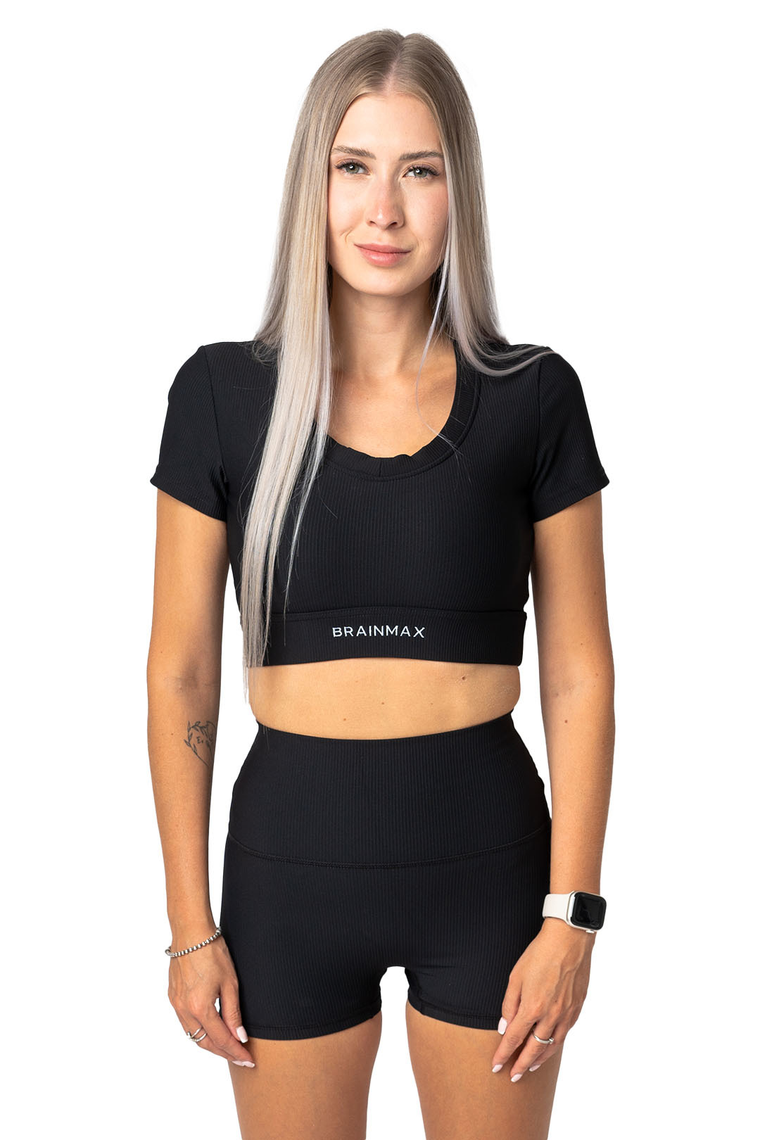 BrainMax dámský žebrovaný zkrácený top s krátkým rukávem, černá